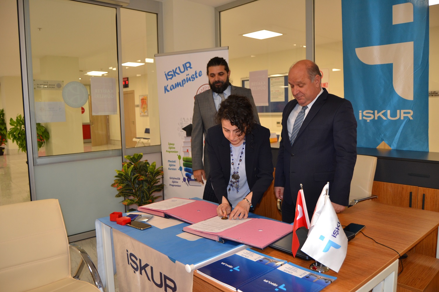 İmzalanan bu protokol kapsamında İzmir Yerleşkemizde aktif olarak hizmet verecek olan İŞKUR iletişim ofisi, iş ve meslek danışmanları haftanın belirli günlerinde öğrencilerimize yönelik eğitim ve çalışmalarda bulunacaklar.