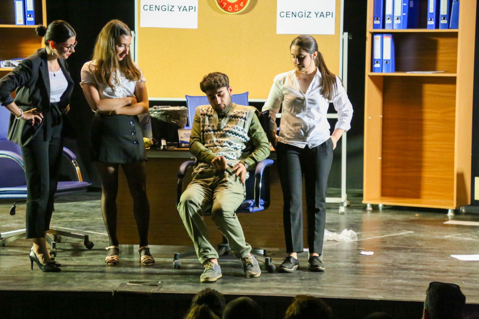 Savaş olgusuna farklı bir bakış getirerek, mizah ve dramı iç içe yaşatan, Fernando Arrabal'in kara mizah türünde kaleme aldığı Cephene Piknik adlı tiyatro oyununu da sahneleyen öğrenciler izleyicilerden büyük alkış aldı.