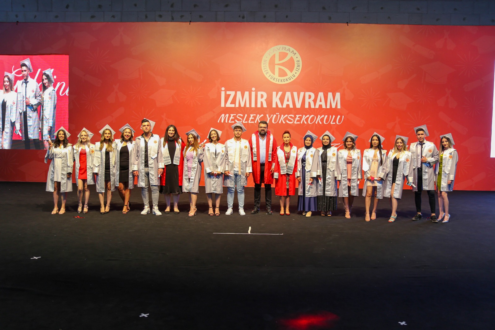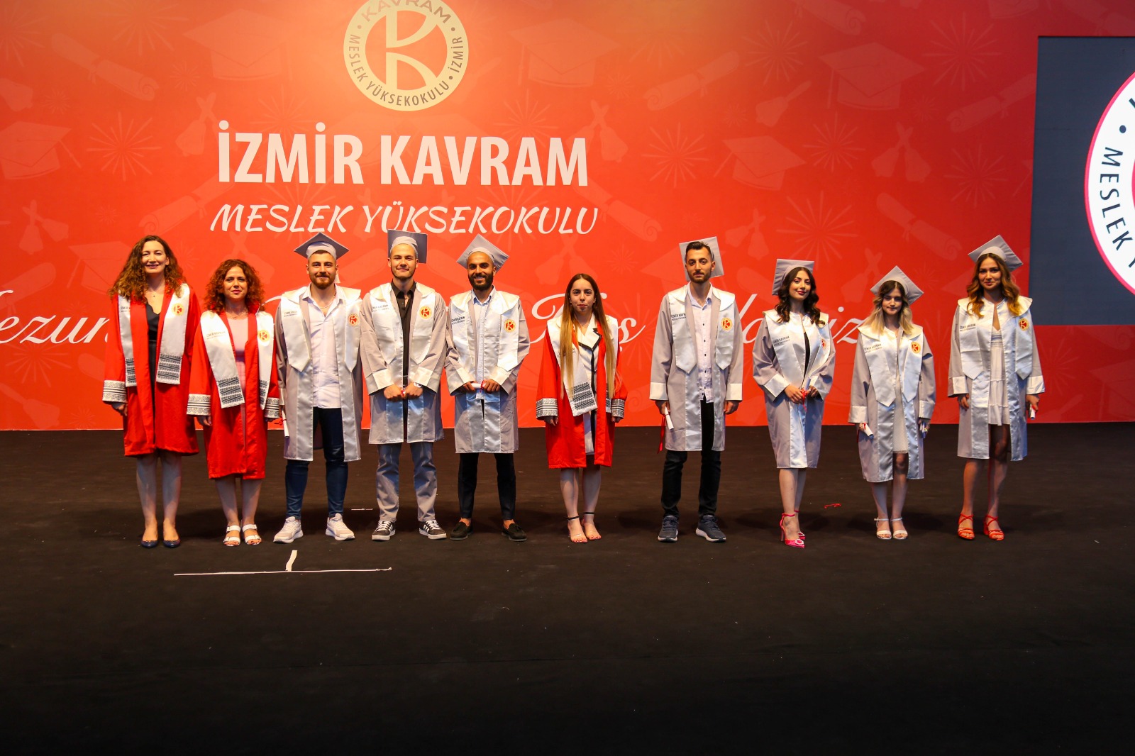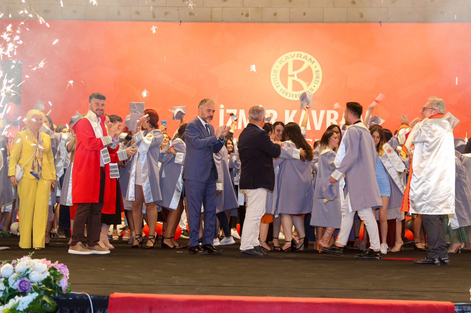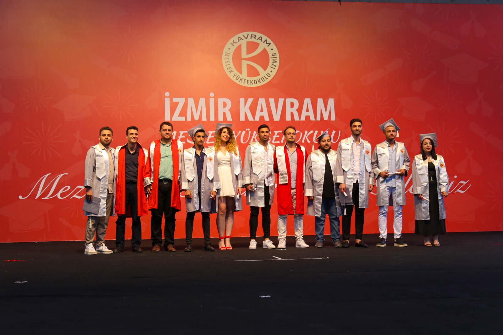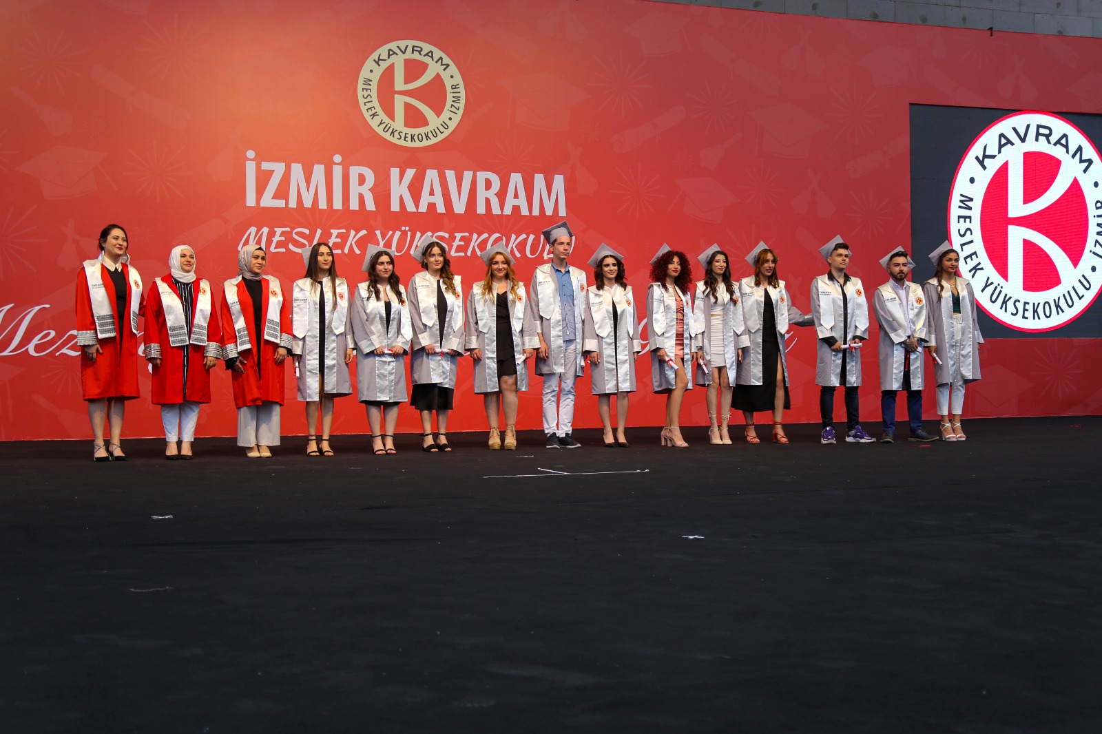 İzmir Kavram Meslek Yüksekokulu mezuniyet töreni Aşık Veysel Amfi Tiyatro'da kutlandı. Programlar halinde sahneye çıkan gençler diplomalarını aldı. Mezuniyet programı, mezun öğrencilerin sahneye çıkması ve kep fırlatması ile sona erdi. Törene, İKMYO Mütevelli Heyeti Başkanı Dr. Erkan Çelik, İKMYO Müdürü Prof. Derman Küçükaltan, İzmir Vali Yardımcısı Fatih Kızıltoprak, Kaymakamı Gökhan Görgülüarslan,akademisyenler ve veliler katıldı. Törende konuşan Dr. Erkan Çelik, bir yılda 30'a yakın mesleki iş birliğine imza attıklarını hatırlatarak, meslek yüksekokulları için iş birliklerinin önemine vurgu yaptı.