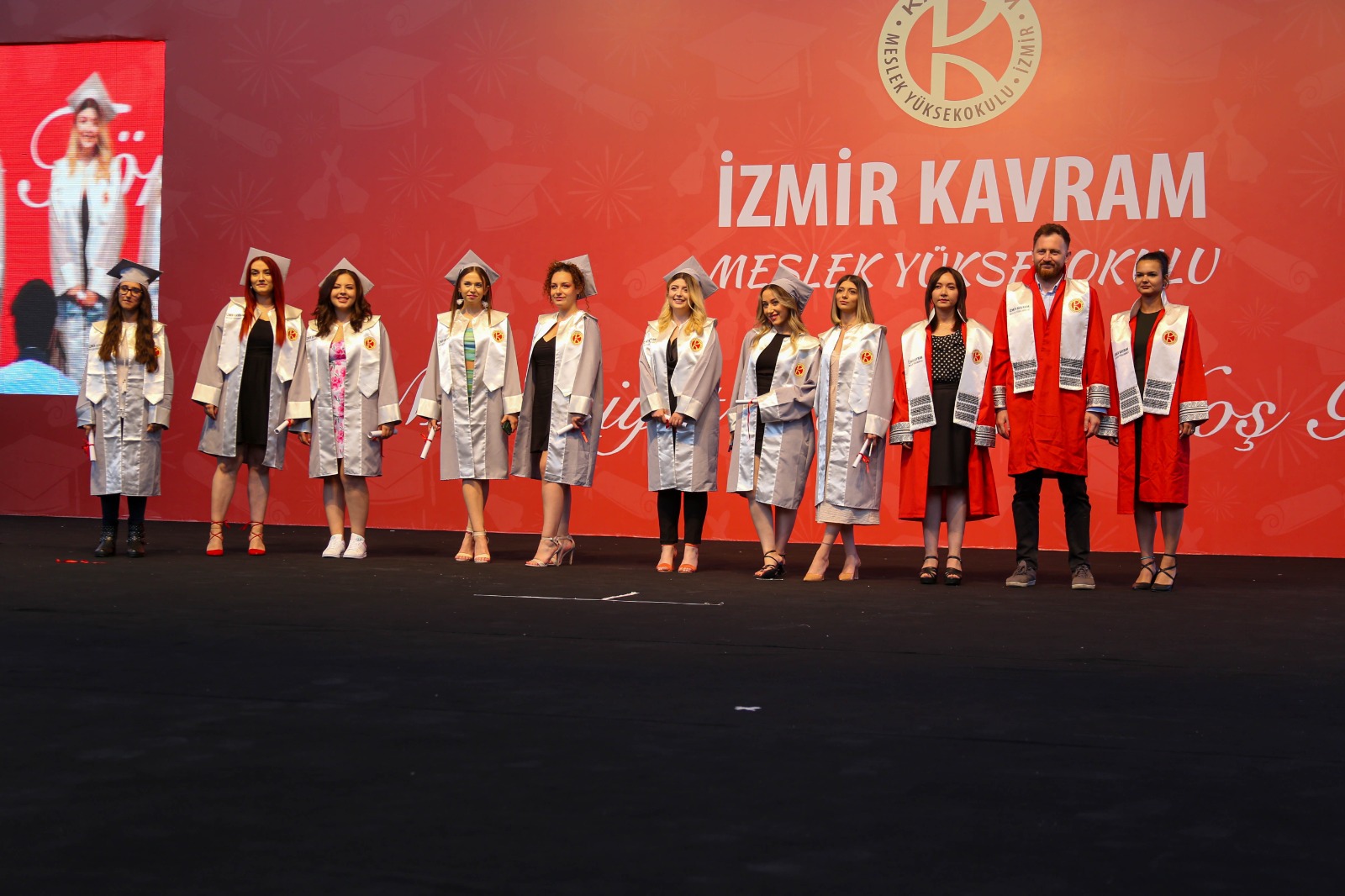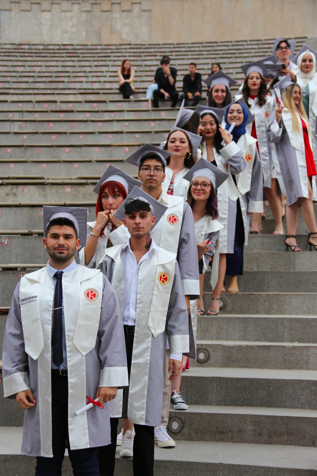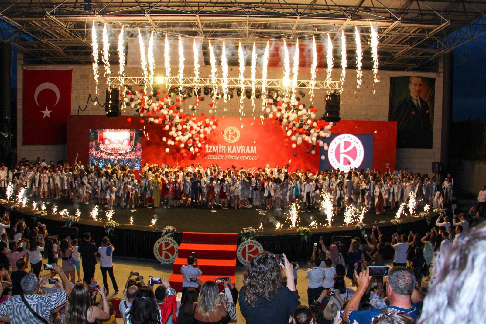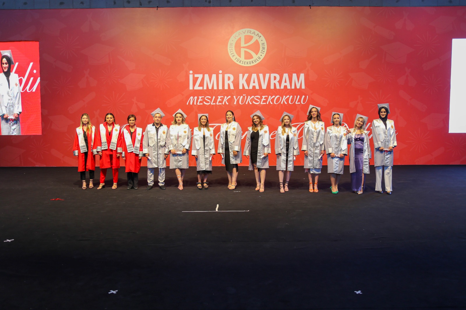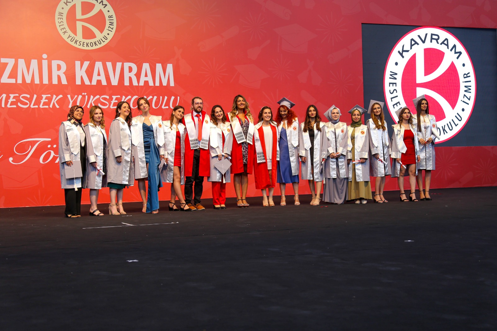 İzmir Kavram Meslek Yüksekokulu mezuniyet töreni Aşık Veysel Amfi Tiyatro'da kutlandı. Programlar halinde sahneye çıkan gençler diplomalarını aldı. Mezuniyet programı, mezun öğrencilerin sahneye çıkması ve kep fırlatması ile sona erdi. Törene, İKMYO Mütevelli Heyeti Başkanı Dr. Erkan Çelik, İKMYO Müdürü Prof. Derman Küçükaltan, İzmir Vali Yardımcısı Fatih Kızıltoprak, Kaymakamı Gökhan Görgülüarslan,akademisyenler ve veliler katıldı. Törende konuşan Dr. Erkan Çelik, bir yılda 30'a yakın mesleki iş birliğine imza attıklarını hatırlatarak, meslek yüksekokulları için iş birliklerinin önemine vurgu yaptı.