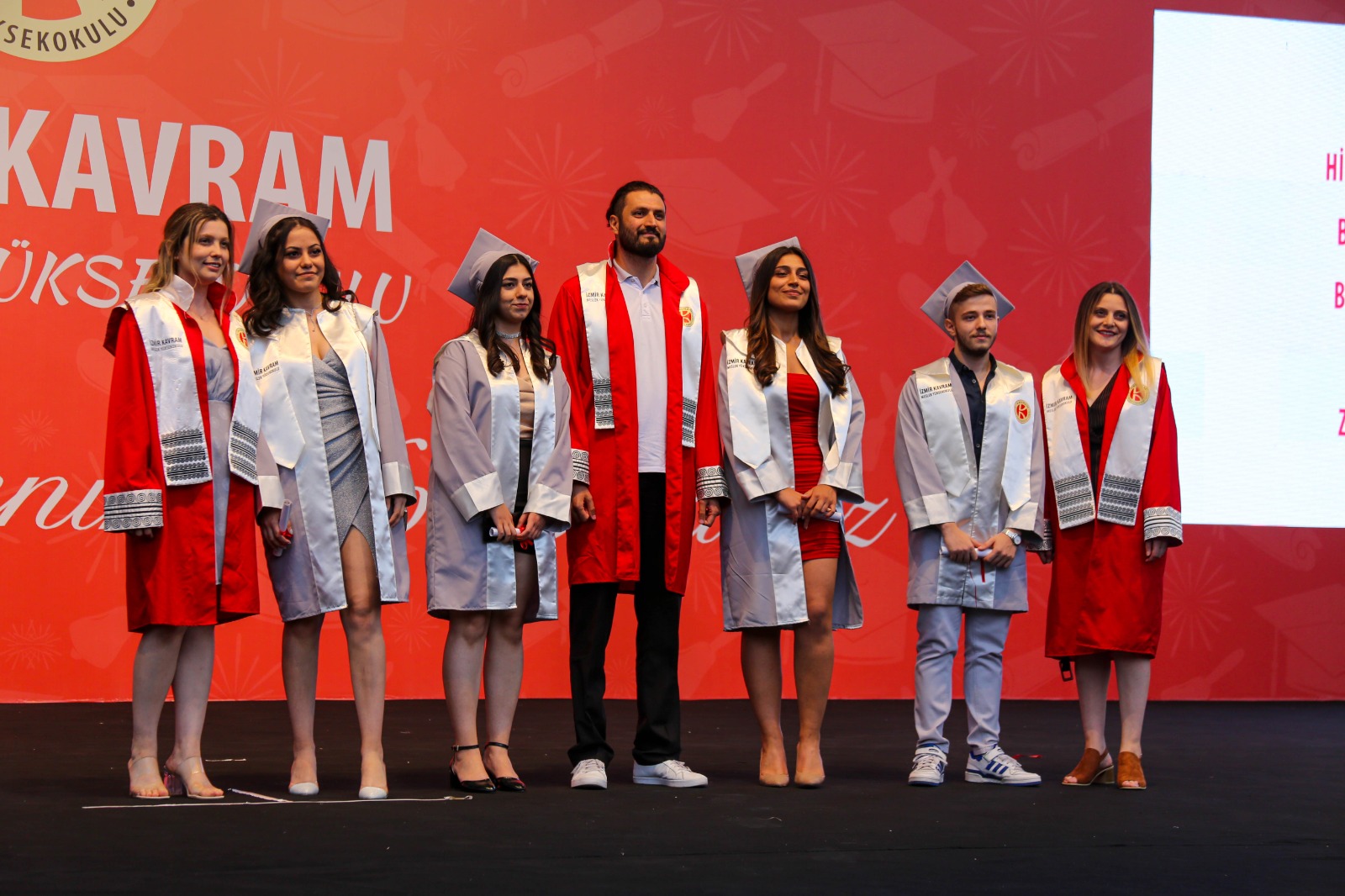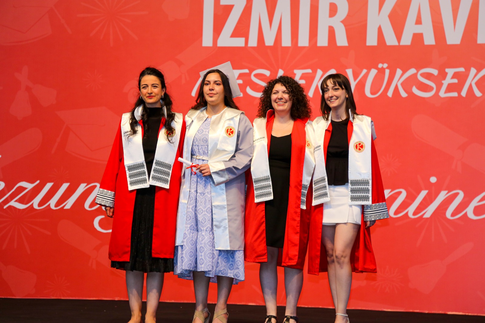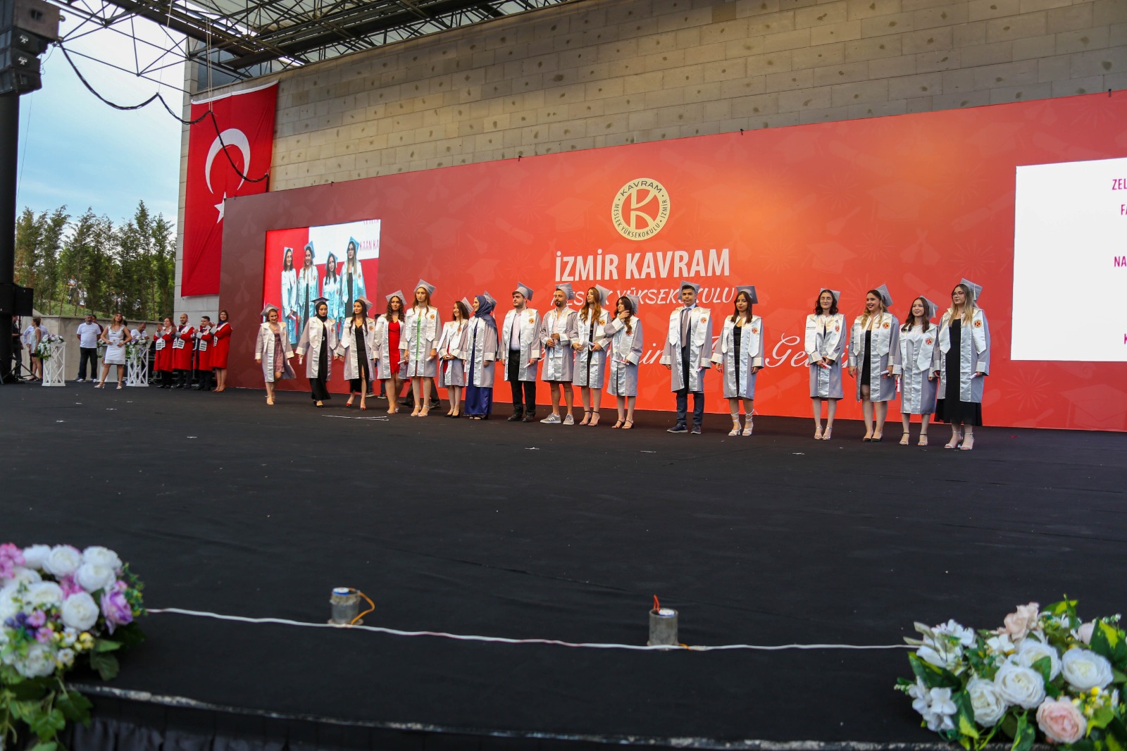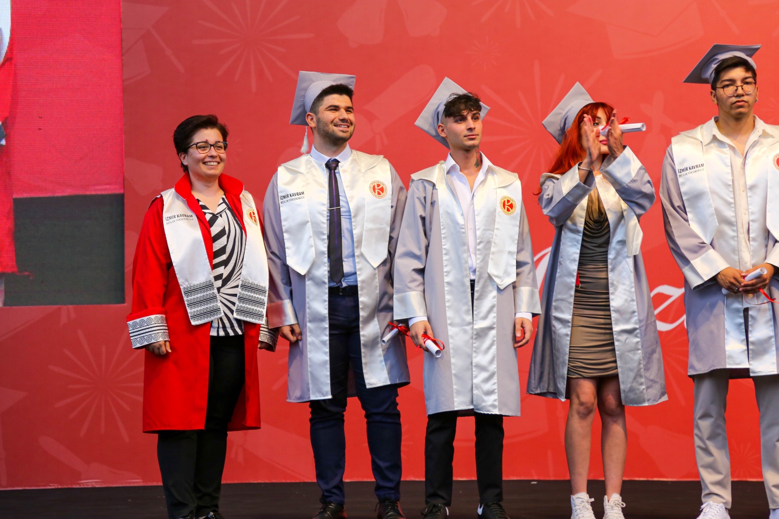 İzmir Kavram Meslek Yüksekokulu mezuniyet töreni Aşık Veysel Amfi Tiyatro'da kutlandı. Programlar halinde sahneye çıkan gençler diplomalarını aldı. Mezuniyet programı, mezun öğrencilerin sahneye çıkması ve kep fırlatması ile sona erdi. Törene, İKMYO Mütevelli Heyeti Başkanı Dr. Erkan Çelik, İKMYO Müdürü Prof. Derman Küçükaltan, İzmir Vali Yardımcısı Fatih Kızıltoprak, Kaymakamı Gökhan Görgülüarslan,akademisyenler ve veliler katıldı. Törende konuşan Dr. Erkan Çelik, bir yılda 30'a yakın mesleki iş birliğine imza attıklarını hatırlatarak, meslek yüksekokulları için iş birliklerinin önemine vurgu yaptı.
