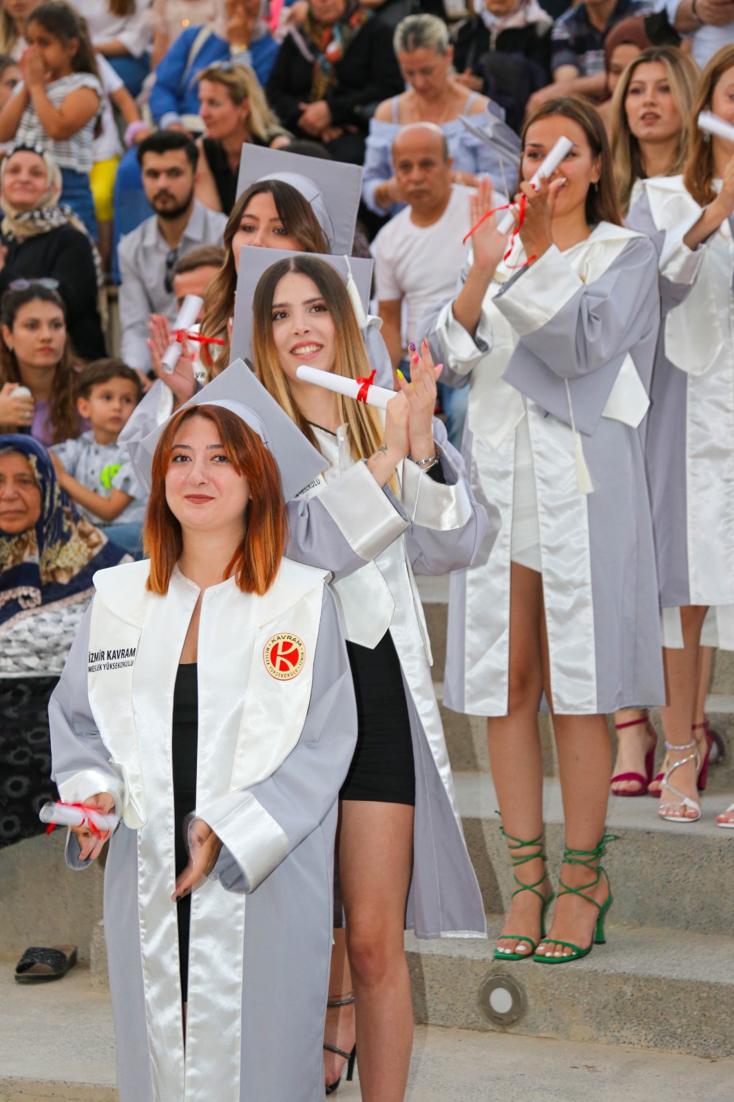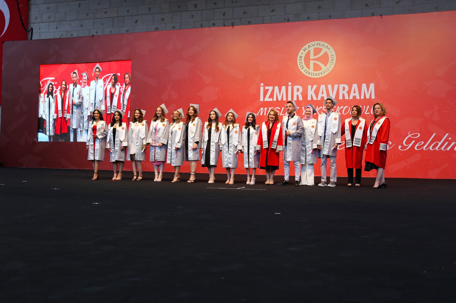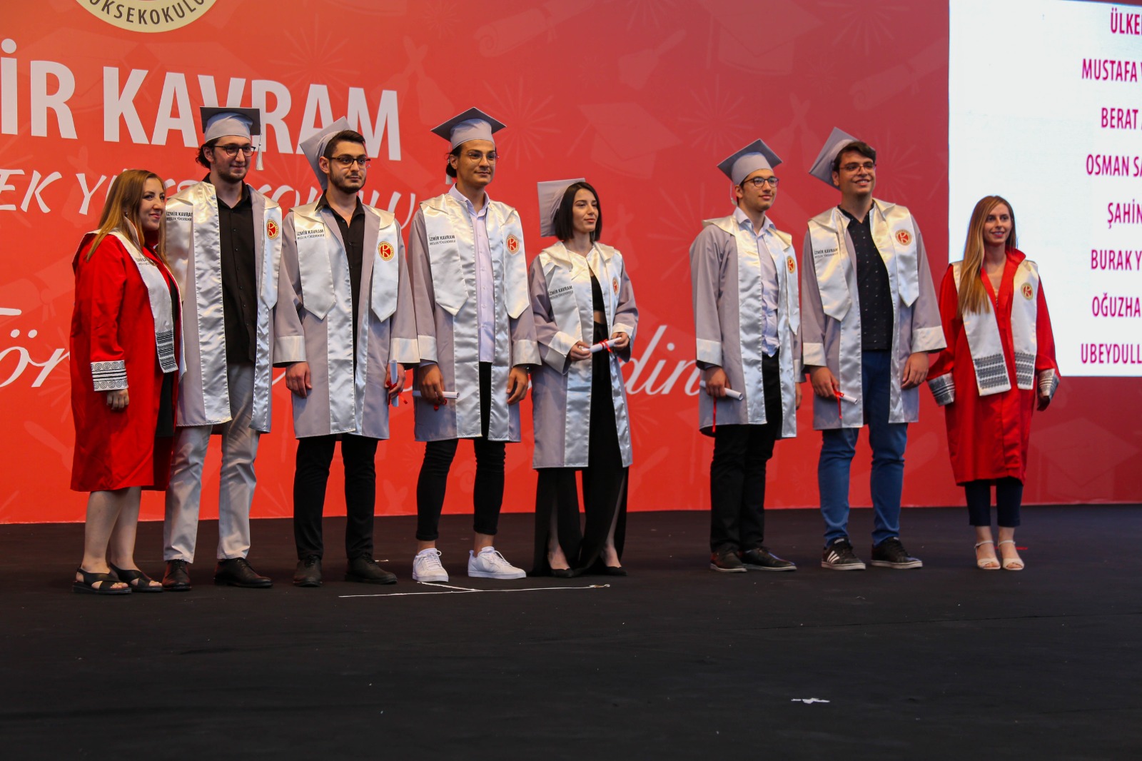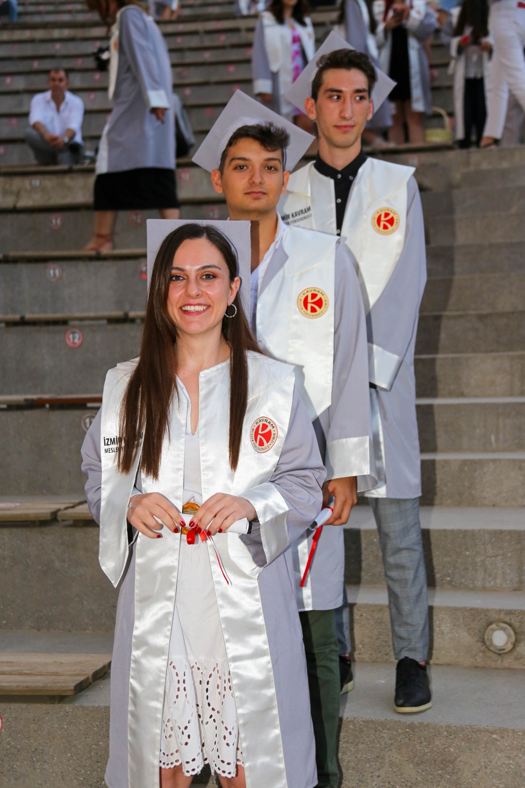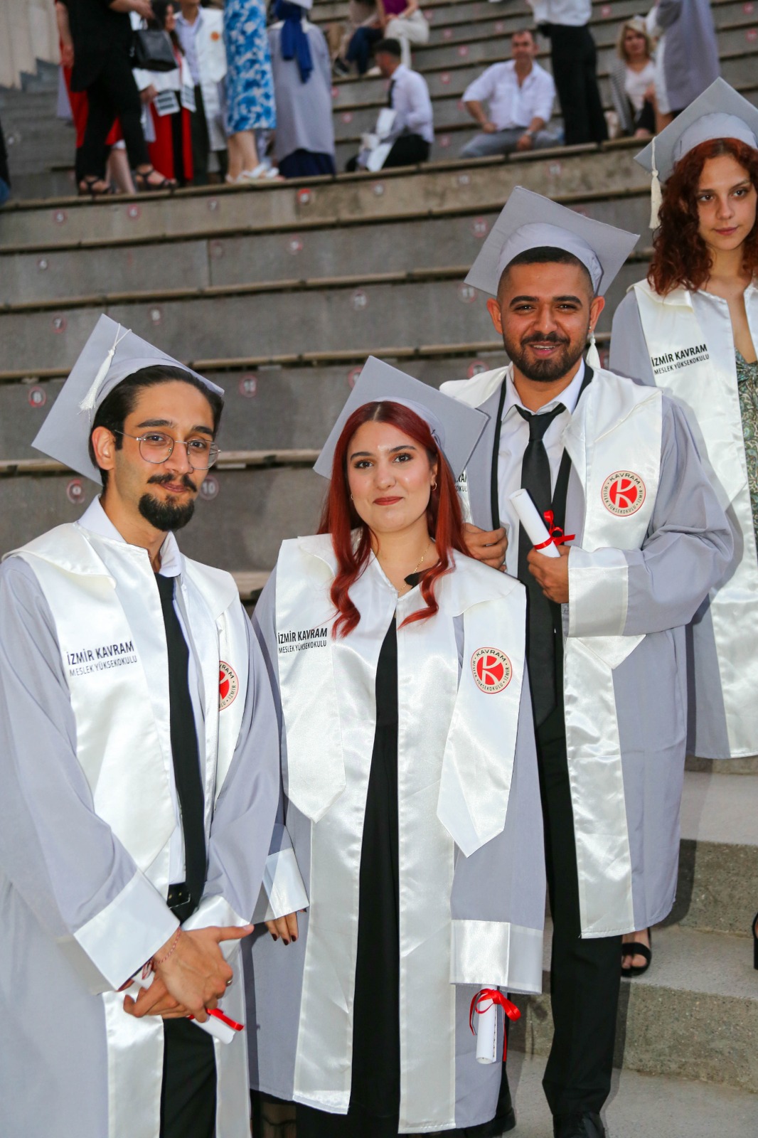 İzmir Kavram Meslek Yüksekokulu mezuniyet töreni Aşık Veysel Amfi Tiyatro'da kutlandı. Programlar halinde sahneye çıkan gençler diplomalarını aldı. Mezuniyet programı, mezun öğrencilerin sahneye çıkması ve kep fırlatması ile sona erdi. Törene, İKMYO Mütevelli Heyeti Başkanı Dr. Erkan Çelik, İKMYO Müdürü Prof. Derman Küçükaltan, İzmir Vali Yardımcısı Fatih Kızıltoprak, Kaymakamı Gökhan Görgülüarslan,akademisyenler ve veliler katıldı. Törende konuşan Dr. Erkan Çelik, bir yılda 30'a yakın mesleki iş birliğine imza attıklarını hatırlatarak, meslek yüksekokulları için iş birliklerinin önemine vurgu yaptı.