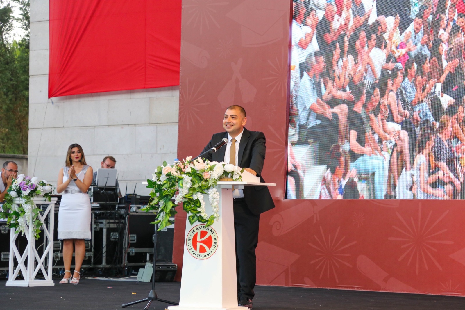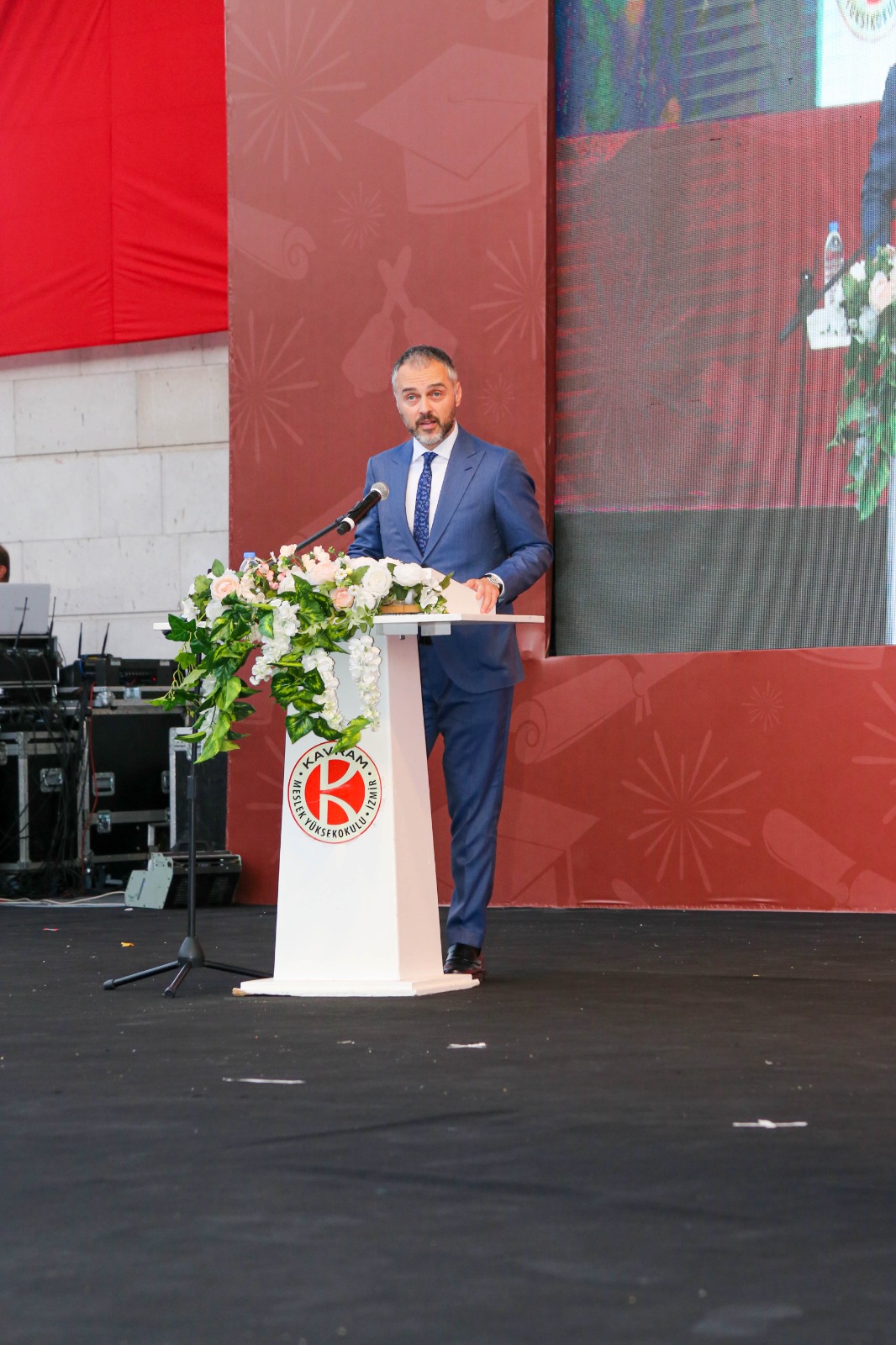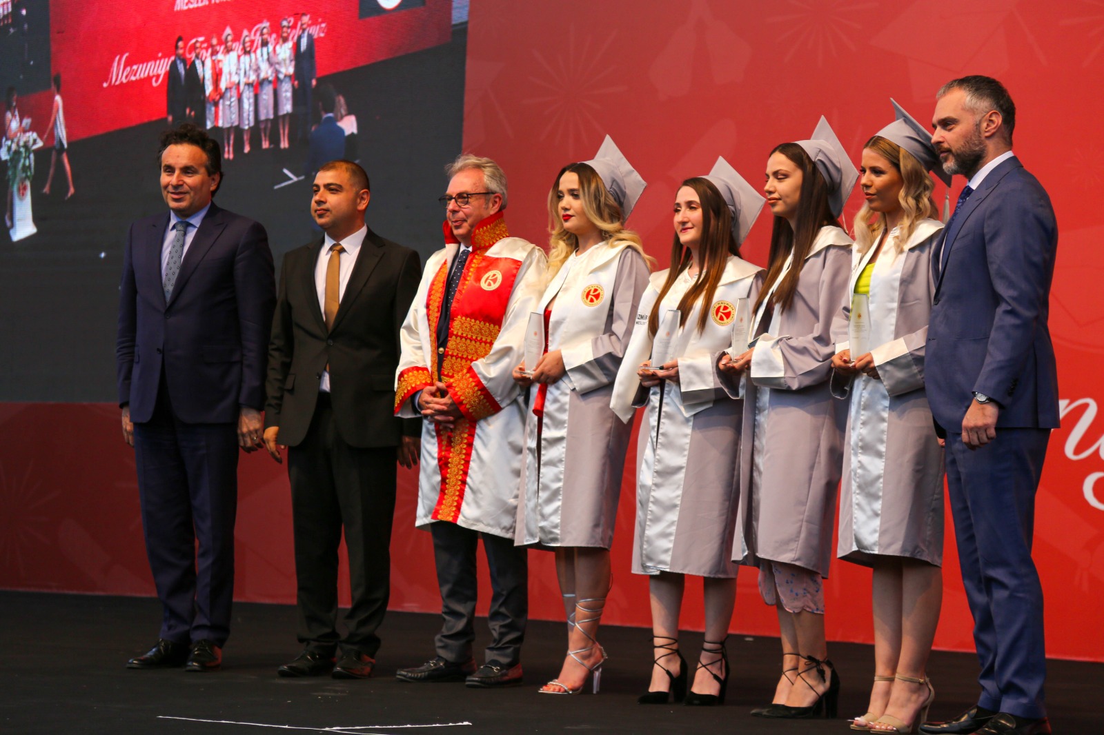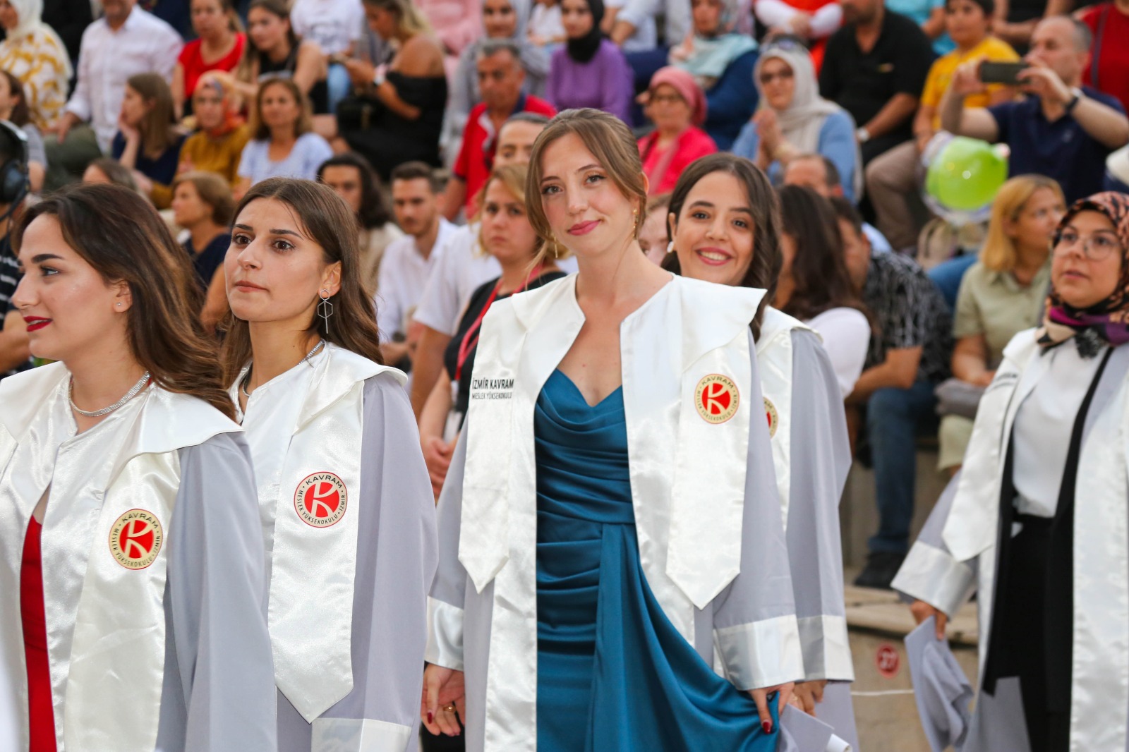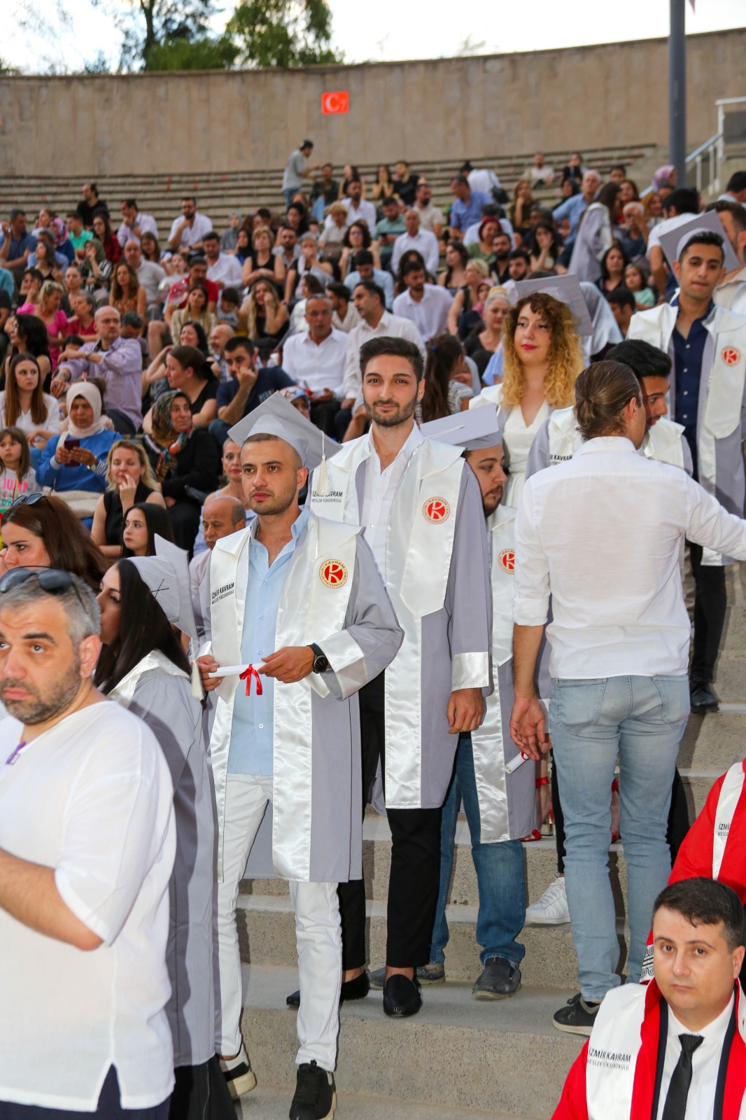 İzmir Kavram Meslek Yüksekokulu mezuniyet töreni Aşık Veysel Amfi Tiyatro'da kutlandı. Programlar halinde sahneye çıkan gençler diplomalarını aldı. Mezuniyet programı, mezun öğrencilerin sahneye çıkması ve kep fırlatması ile sona erdi. Törene, İKMYO Mütevelli Heyeti Başkanı Dr. Erkan Çelik, İKMYO Müdürü Prof. Derman Küçükaltan, İzmir Vali Yardımcısı Fatih Kızıltoprak, Kaymakamı Gökhan Görgülüarslan,akademisyenler ve veliler katıldı. Törende konuşan Dr. Erkan Çelik, bir yılda 30'a yakın mesleki iş birliğine imza attıklarını hatırlatarak, meslek yüksekokulları için iş birliklerinin önemine vurgu yaptı.