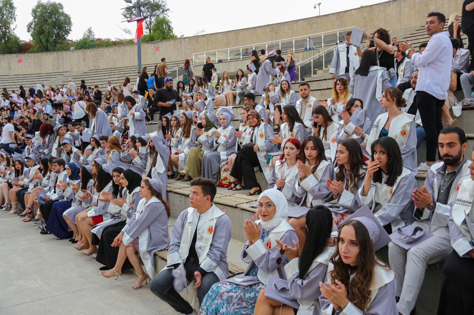 İzmir Kavram Meslek Yüksekokulu (İKMYO) 2021-2022 Akademik Yılı Mezuniyet Töreni, Aşık Veysel Amfi Tiyatro’da coşkuyla kutlandı. 29 farklı programdan mezun olan bine yakın yüksekokul mezunu genç kep atarak mezun olmanın sevincini yaşadı.