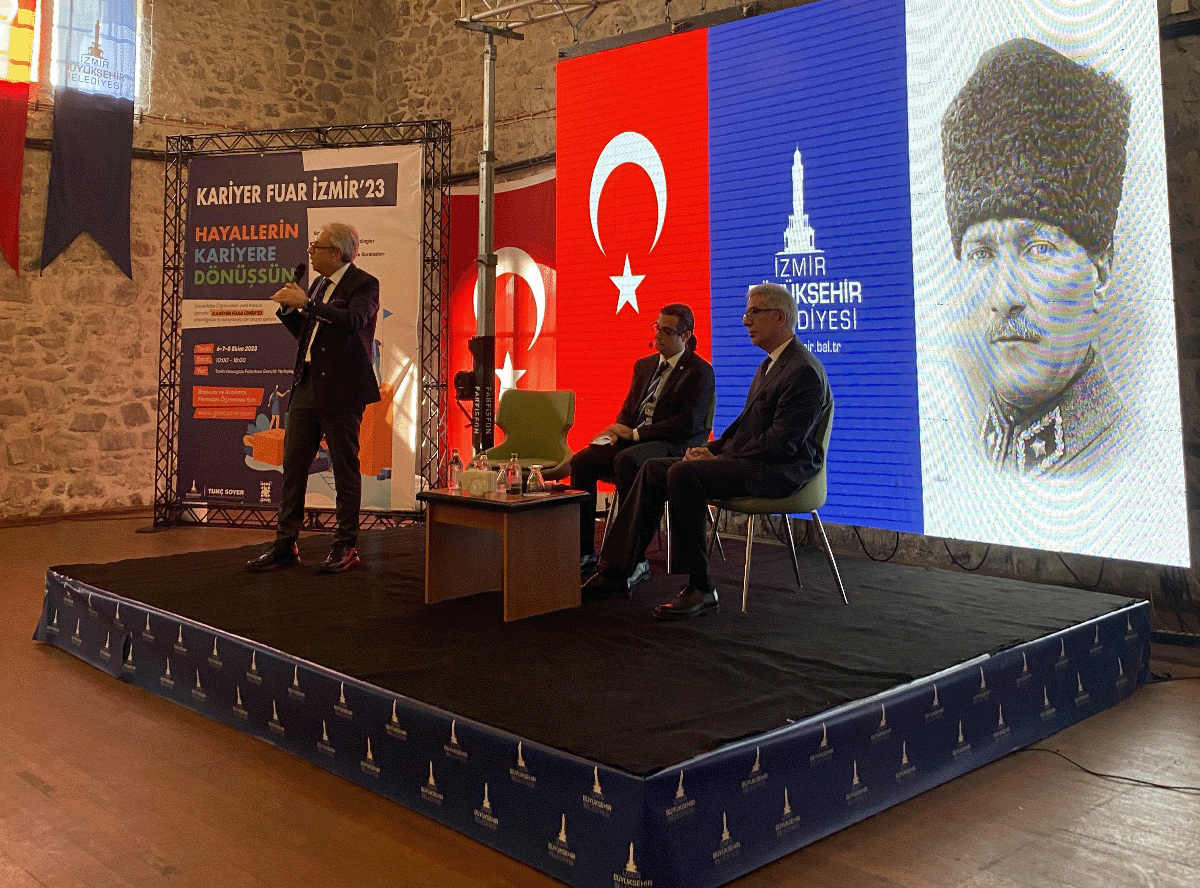 İzmir Büyükşehir Belediyesi tarafından, 6-7-8 Ekim 2023 tarihleri arasında Tarihi Havagazı Fabrikası Gençlik Yerleşkesi’nde düzenlenen kariyer fuarına, Meslek Yüksekokulumuz da katılım sağladı. Açılış panelinde Yüksekokul Müdürümüz Prof. Dr. Derman Küçükaltan, “Akademide Kariyer” konulu bir sunum gerçekleştirdi.